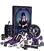 Officieel gelicentieerde adventskalender met 24 cadeauartikelen met een woensdagthema (schoenentas, mylar ballon, pen, sokken, sleutelhanger in de vorm van een figuur, ornament van acryl, armband, speelgoedbeker, puzzel, stickers, meetlint, lenticulaire bladwijzer, geweven patch, rubberen sleutelhanger, trekkoordtasje, speld, haarspeld, spiegel, lenticulaire speld, liniaal, magneet, bagagelabel, sleutelhanger met bolletjesketting, boodschappentas)