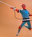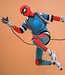 Deze figuur op schaal zes is voorzien van Spider-Man's klassieke zelfgemaakte pak, gecombineerd met een marineblauwe sportset, een rood gemaskerd hoofd bedekt met stof en beschermende rode kniebeschermers.